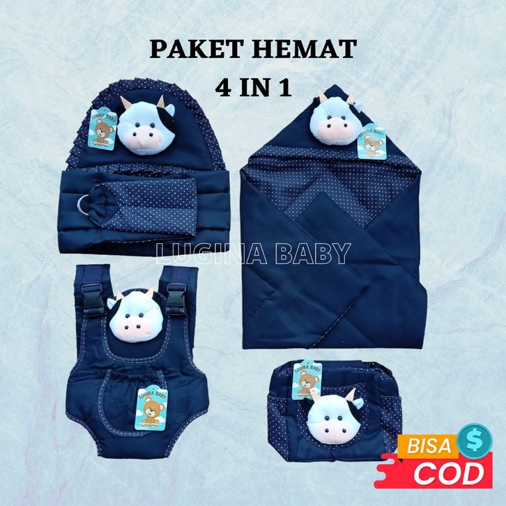 Gendongan Bayi Lucu Paket hemat 4 in 1 Gendongan samping bayi Gedongan depan multifungsi Tas kecil dora dan Selimut