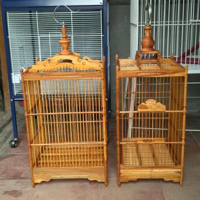 Kandang kotak kayu jati no 3 buat burung kenari dll komplit tangringan