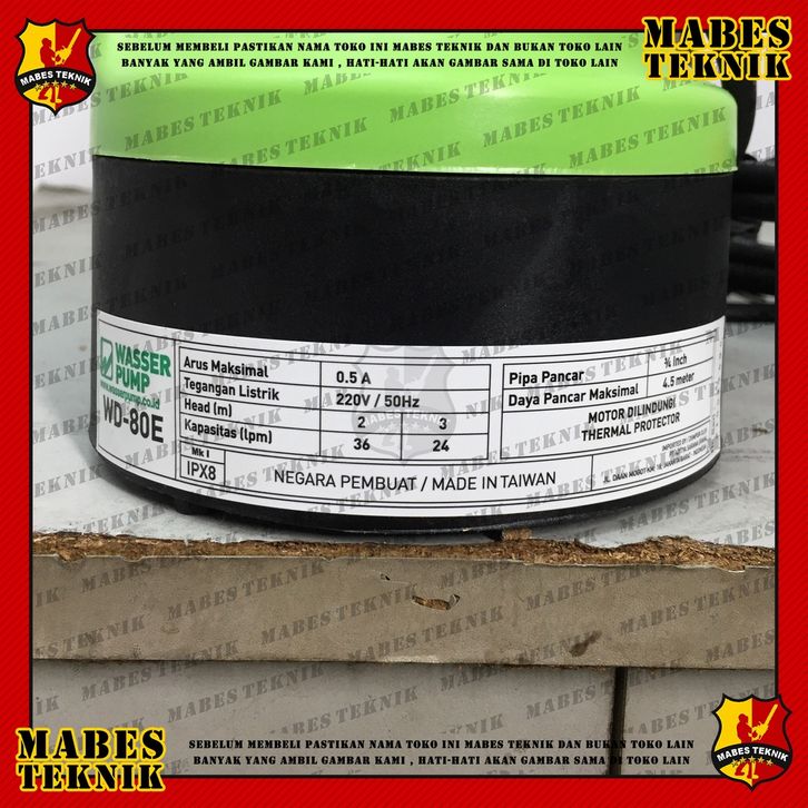 BEST SELLER WASSER WD 80 E / WD80E - POMPA CELUP AIR KOLAM IKAN / SIRKULASI / KURAS AIR - 80 WATT