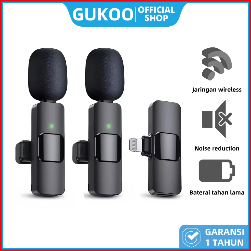 Gukoo 2-in-1 Mic Clip Type-c Lightning - 1 Mic Untuk Hp Android Iphone
