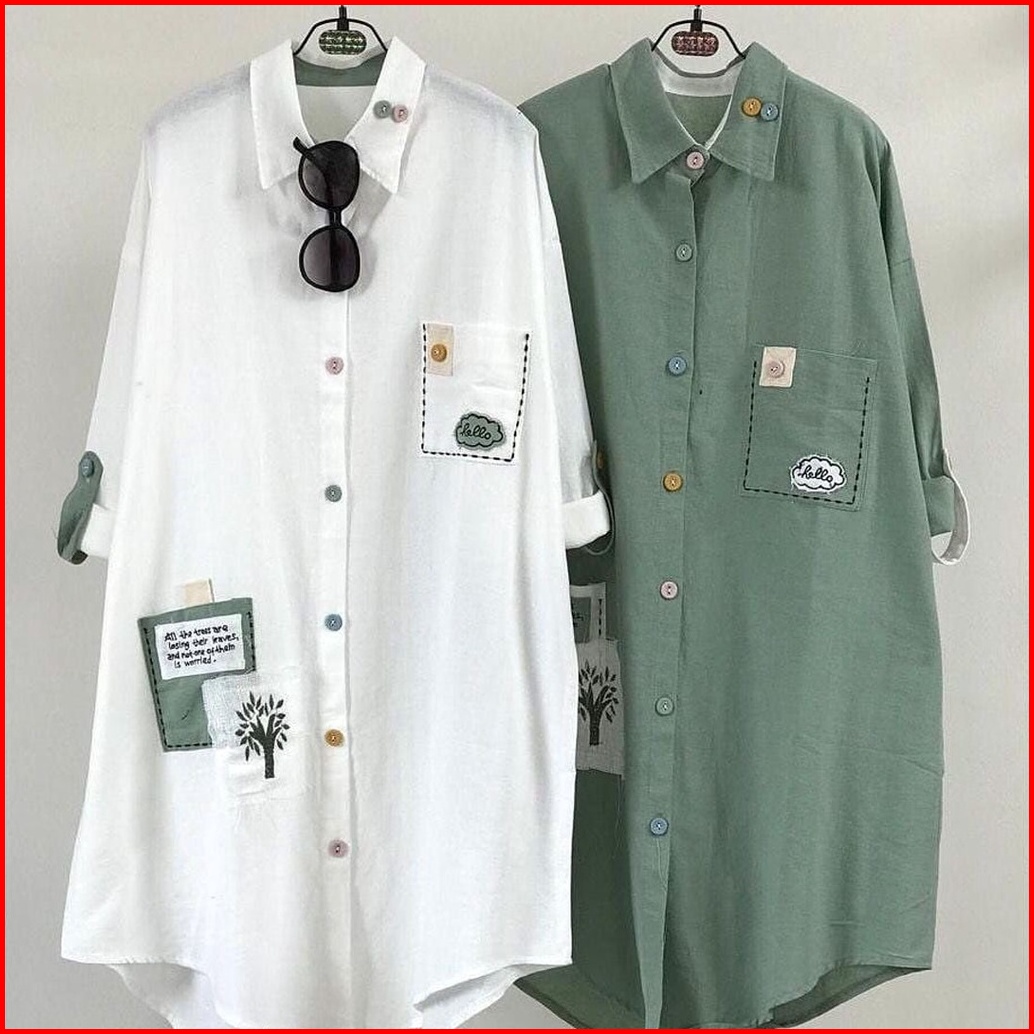 Vallina Outfit - Miya Long Tunik Patch Pocket Atasan Wanita Muslim Modern Kekinian Linen Rami Crinkle Premium M - Xl