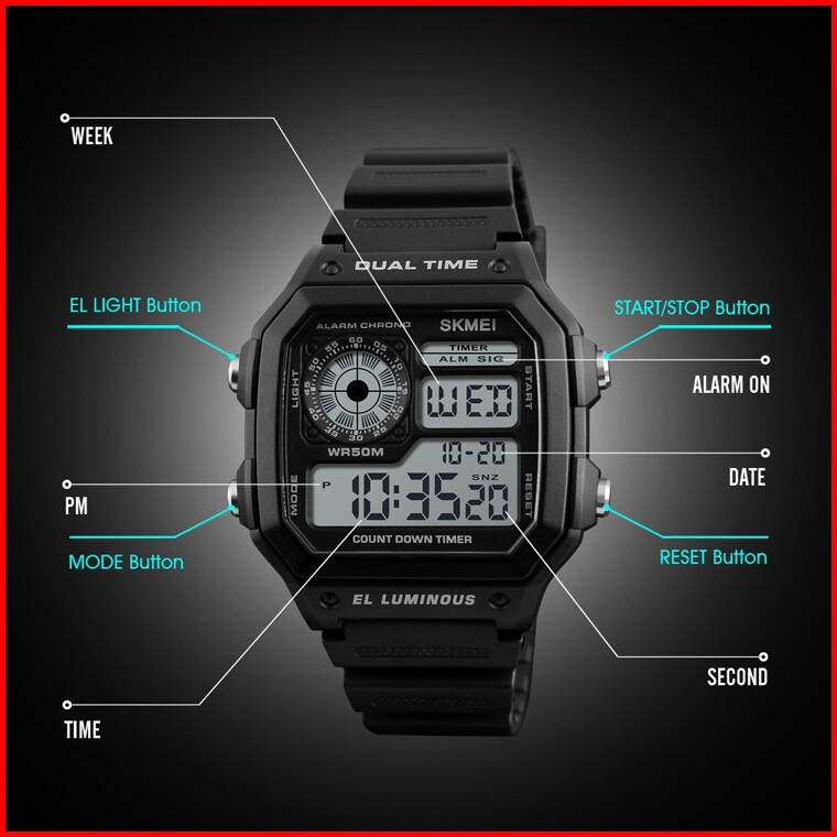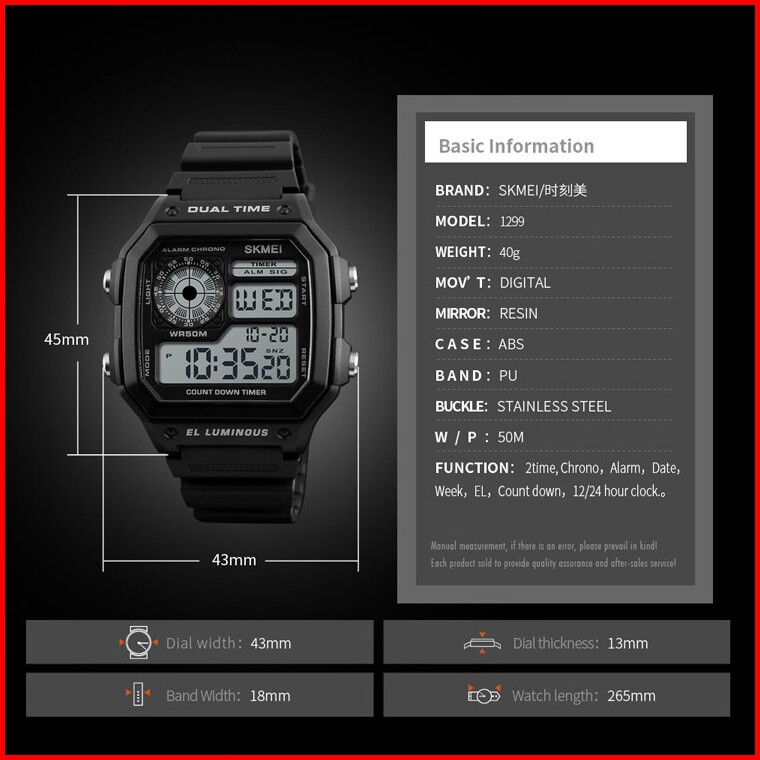 Skmei 1299 Jam Tangan Pria Wanita Digital Anti Air Mgos