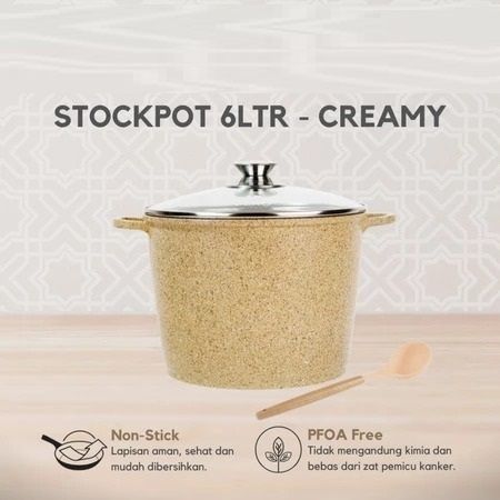 Pero Stock Pot Panci Gentong 24cm with Glass Lid / Panci Granite Anti Lengket / Panci Granite Besar Kapasitas 6 Liter An