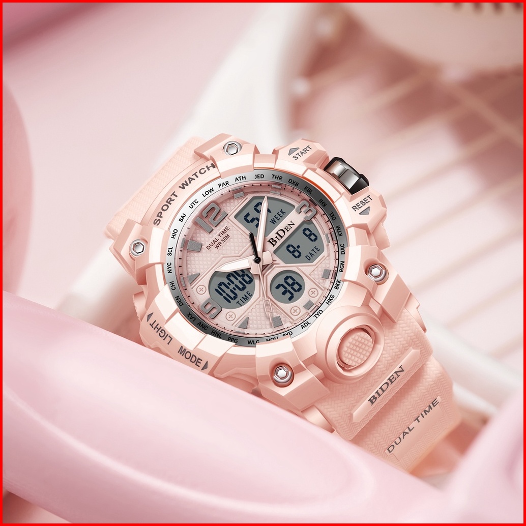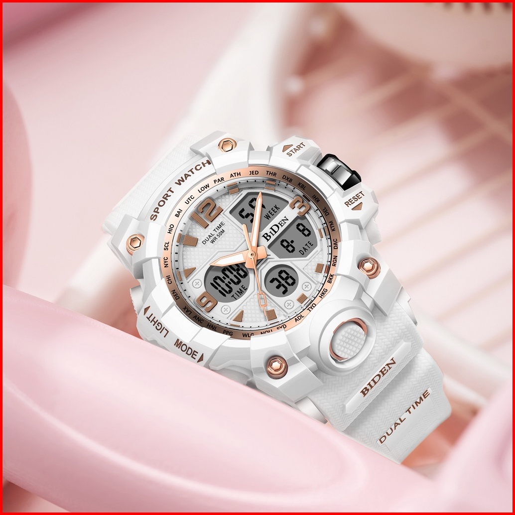 Biden Jam Tangan Wanita Original Anti Air Multifungsi Olahraga Digital Analog Tali Silikon Jam Tangan Cewek