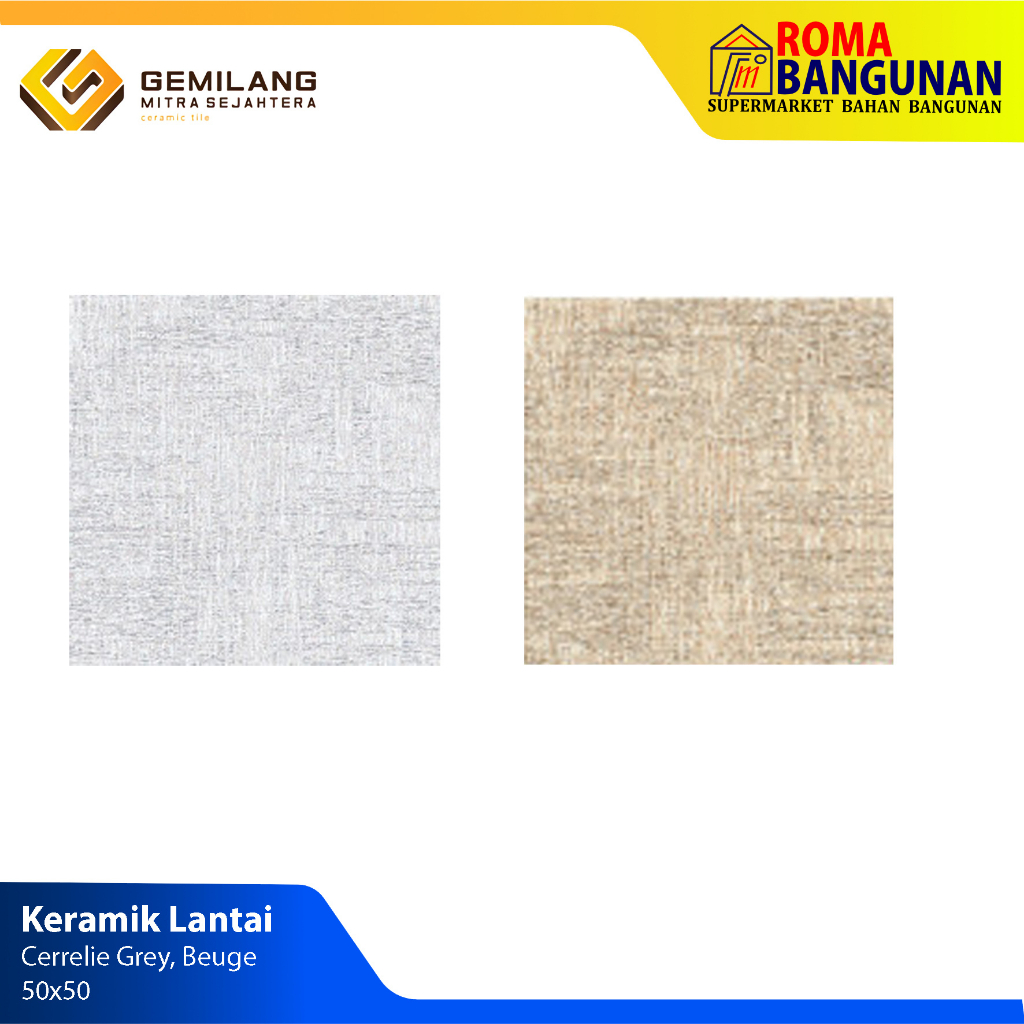Gemilang Keramik Lantai Keramik Kamar Mandi Keramik Teras Keramik Garasi Cerrelie Grey Cerrelie Beige 50X50 - Grey
