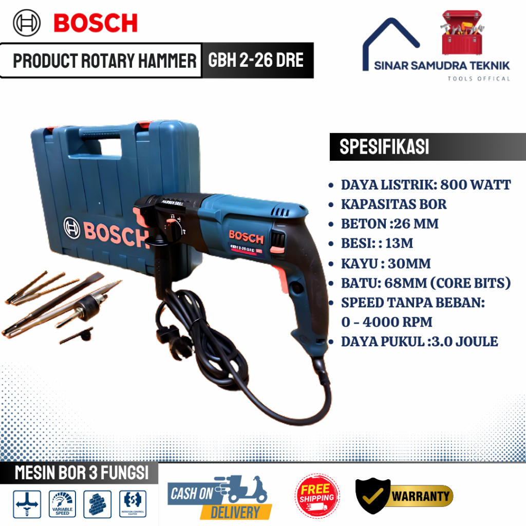 FLASH SALE !!! MESIN BOR BOSCH 226 3 FUNGSI BOBOK BETON ROTARY HAMMER (REAL SESUAI GAMBAR)