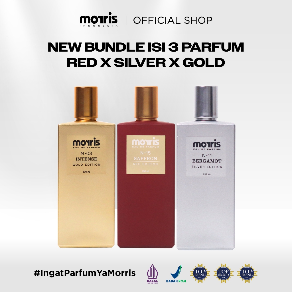 Morris Triple Perfume Set | Red & Gold & Silver EDP 100ml | Parfum Pria Elegant