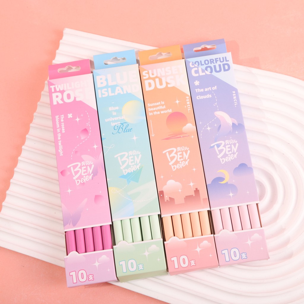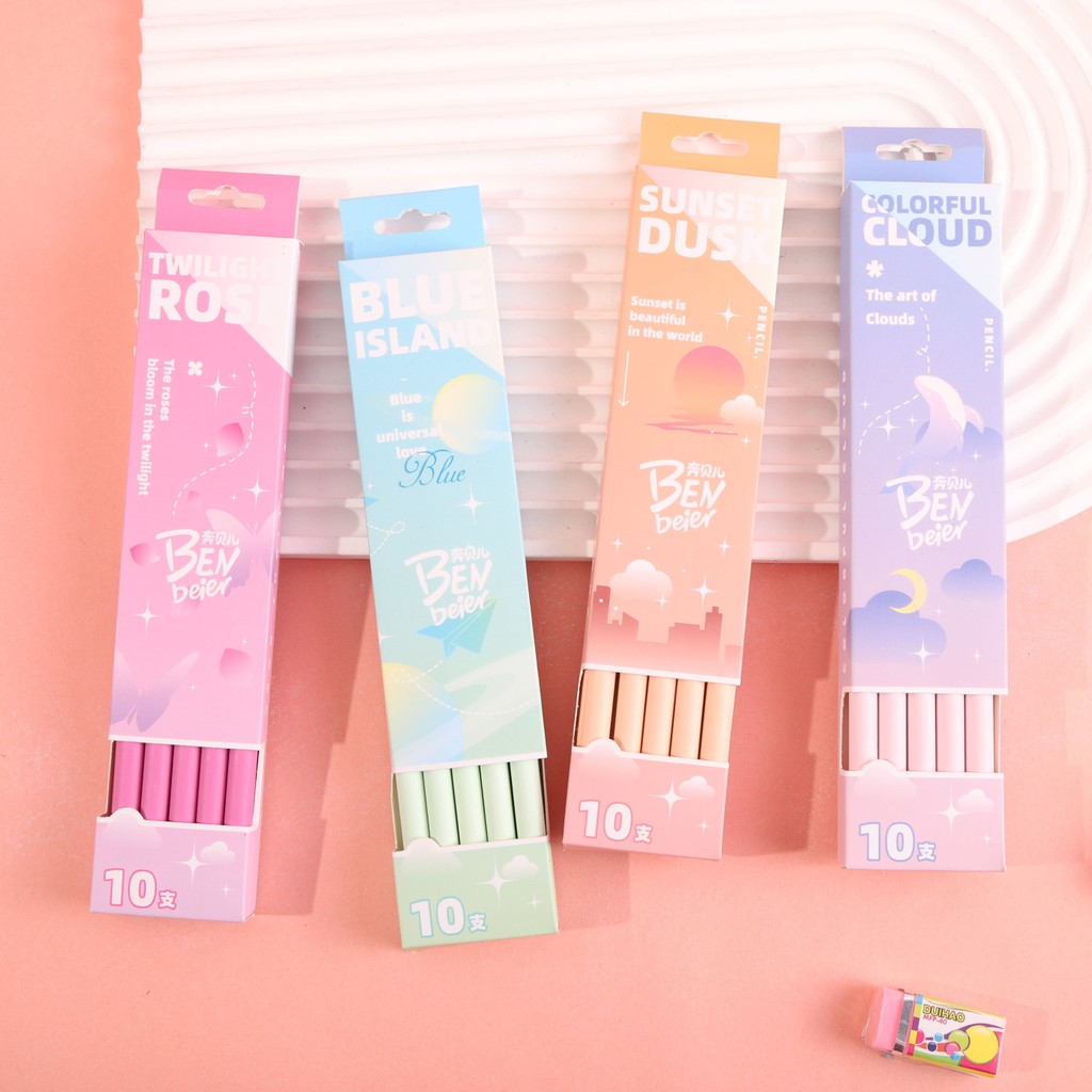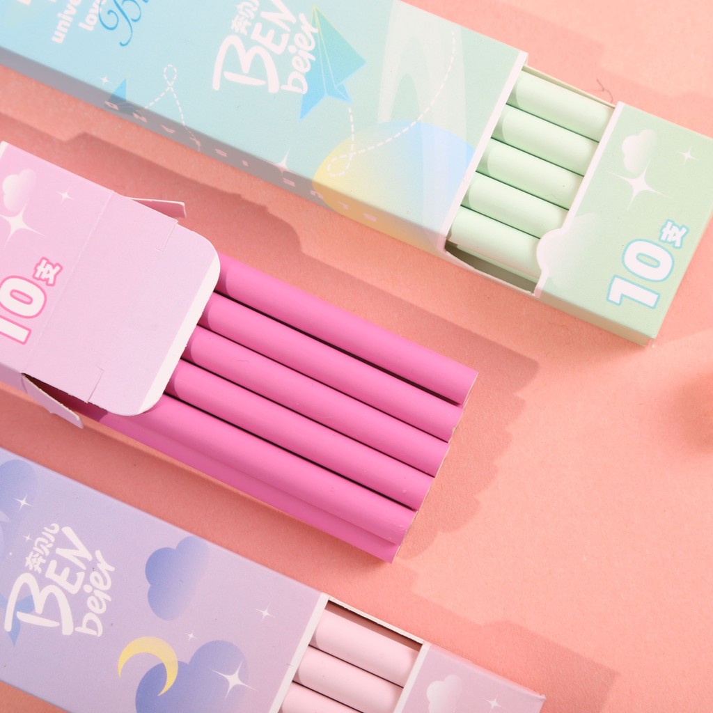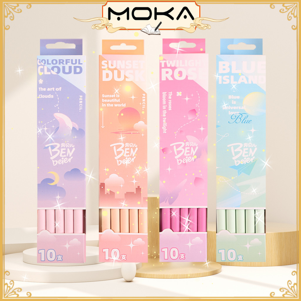 MOKA PENSIL HB ISI 10 PCS MOTIF SOFT COSMIC COLORED THEME TIDAK MUDAH PATAH DAN PIGMENTED MKP19