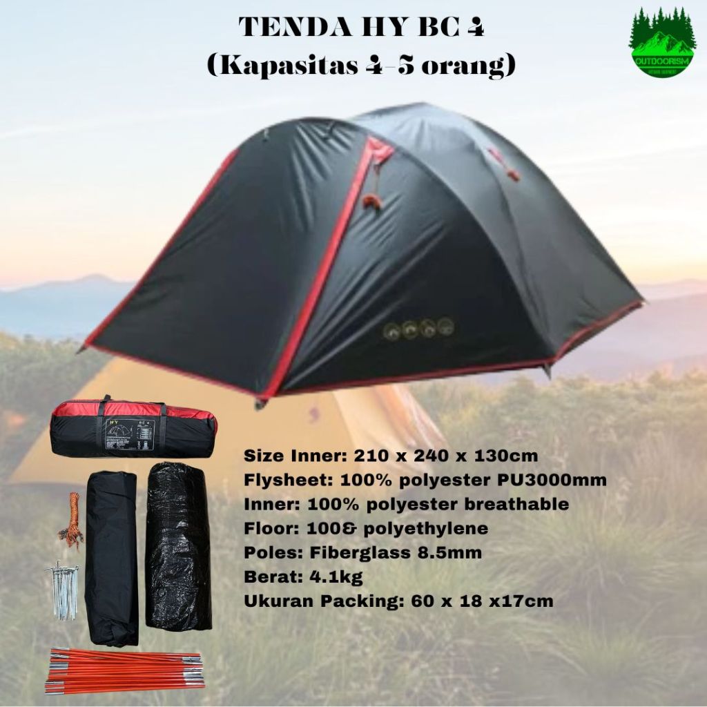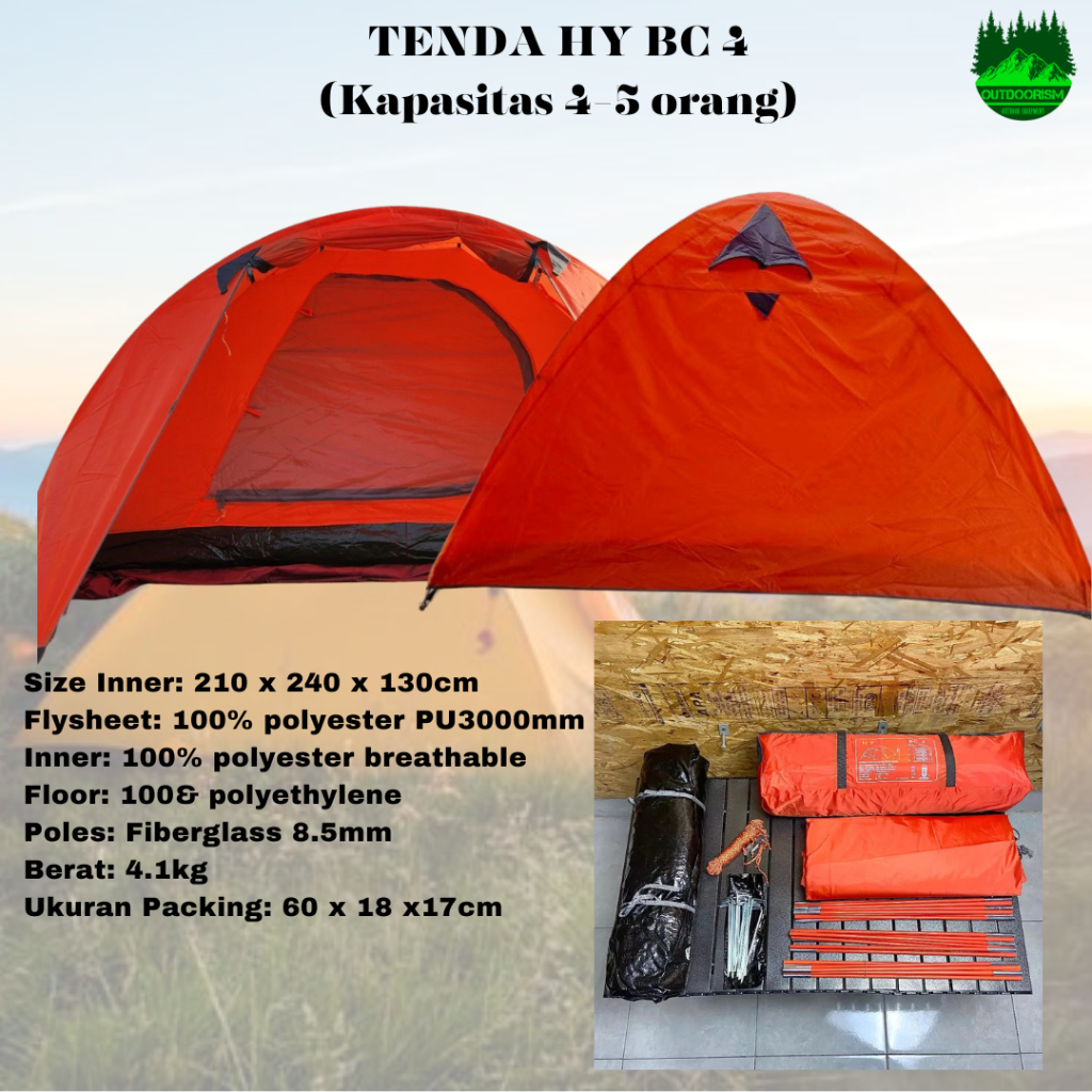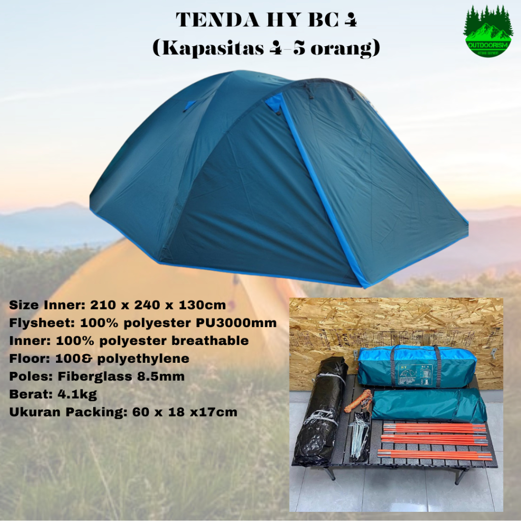 Tenda Camping Outdoor HY BC 4|Tenda LWY Compass 4P Double Layer|Tenda Single Layer Kapasitas 4 Murah