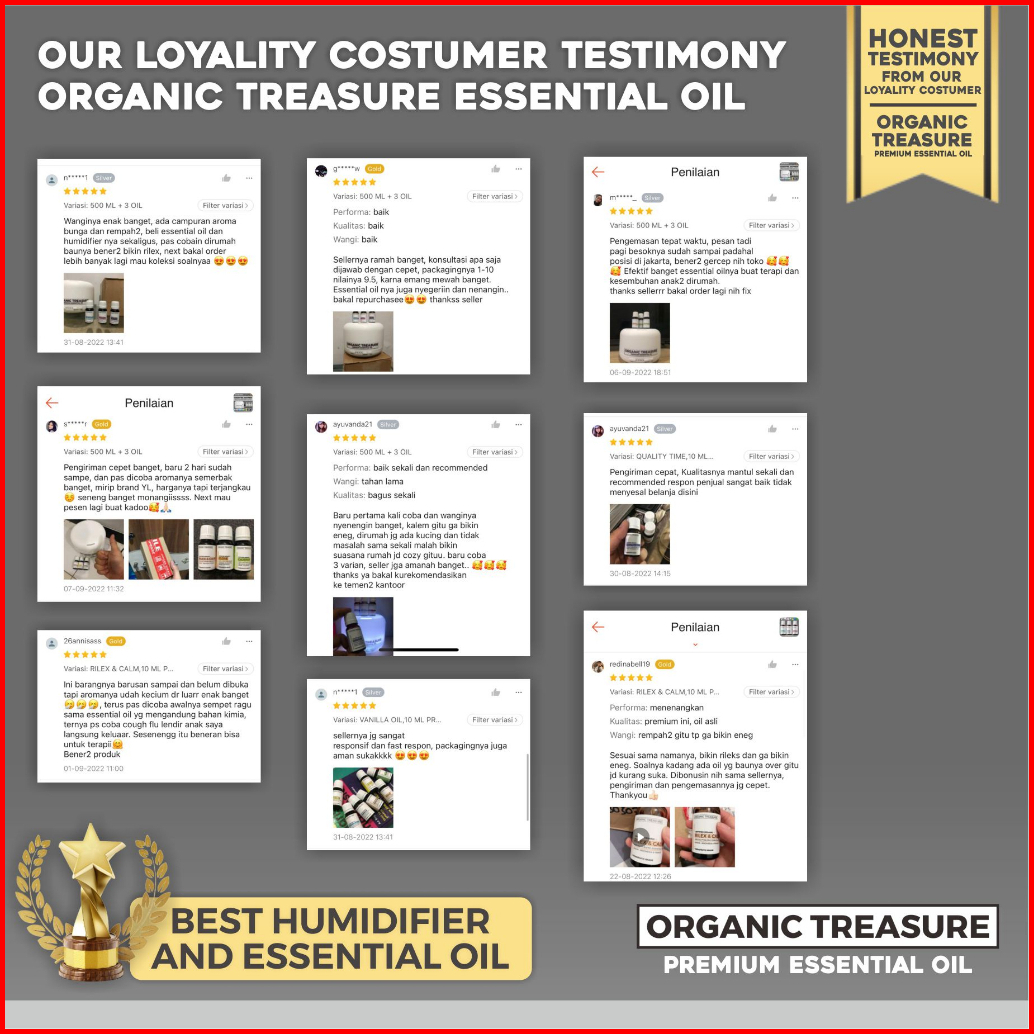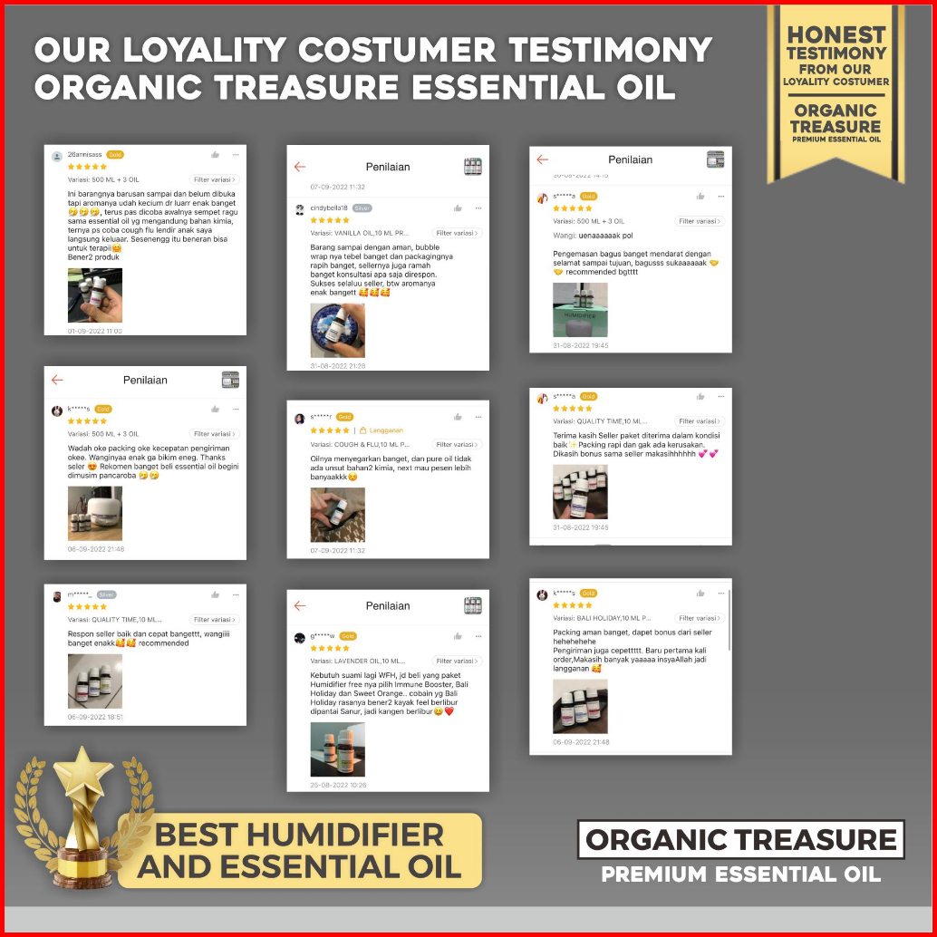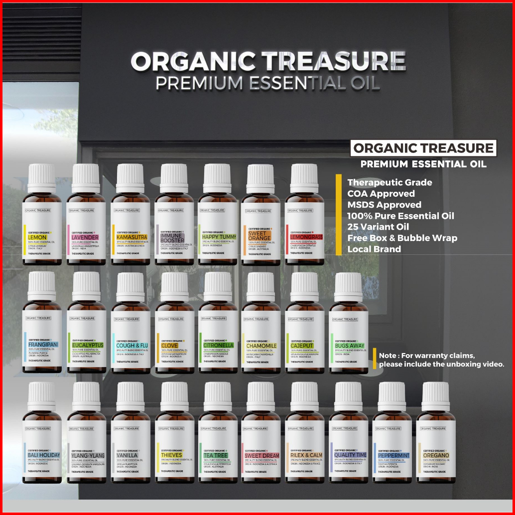 Organic Treasure - Paket Mini Humidifier 220ml Aromatherapy Free 4 Essential Oil Grade 1 Year Guarantee