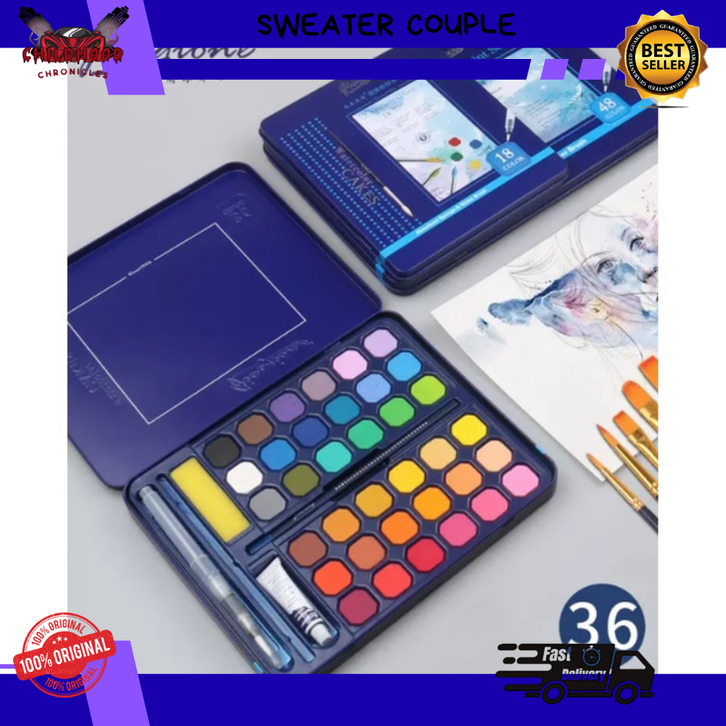 36/48 Watercolor Set Cat Air Set (Bonus Kuas dan Kertas Gambar) / Cat Air Padat / Solid Watercolor Set / 36 48 Warna Cat