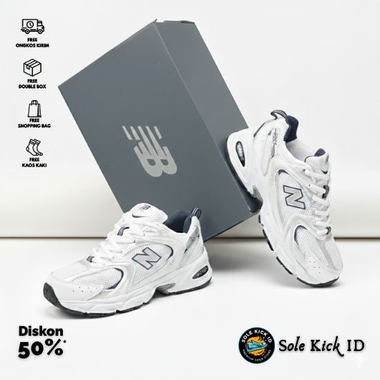[Mall] Sepatu Sneakers Pria Wanita New Balance 530 White Silver Indigo Casual Running Premium High Quality Size 36-44