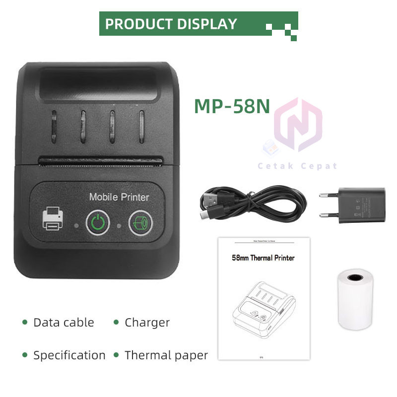 PRINTER BULETOOTH MINI PRINTER KASIR 58MM PRINTER THERMAL SUPPORT ANDROID/IOS/WINDOWS BLUETOOTH +USB FREE GIFT 3 ROL KERTAS
