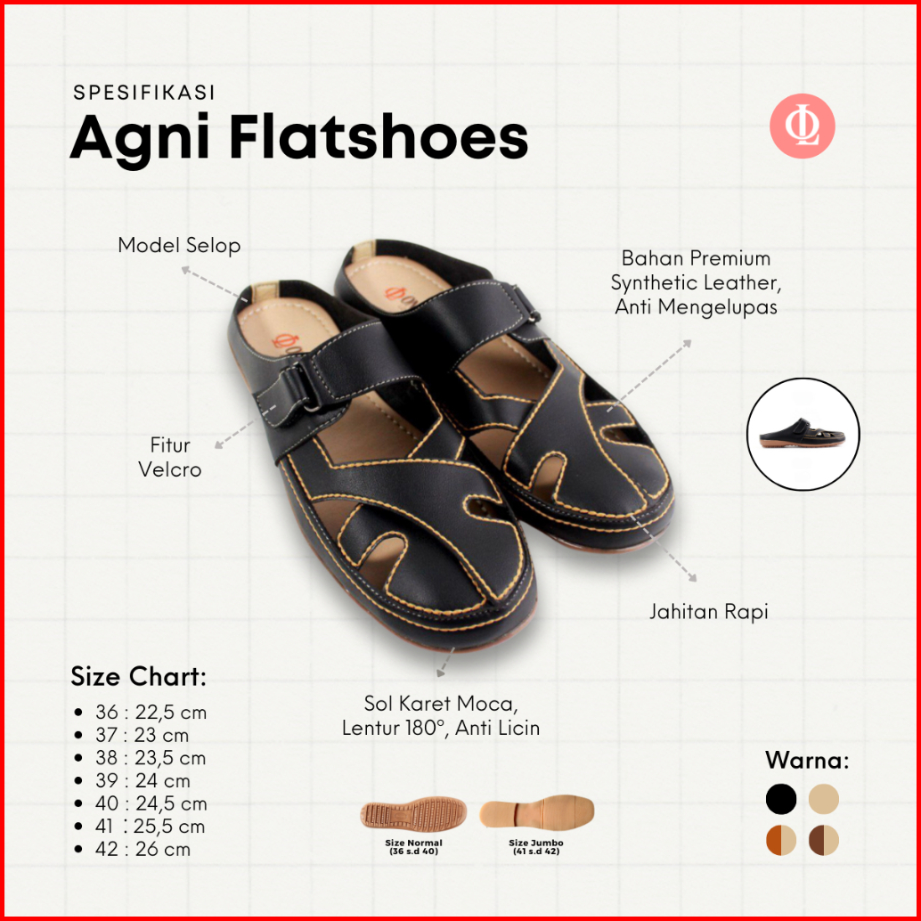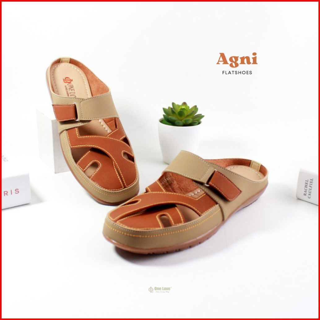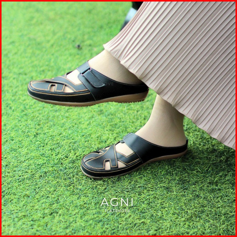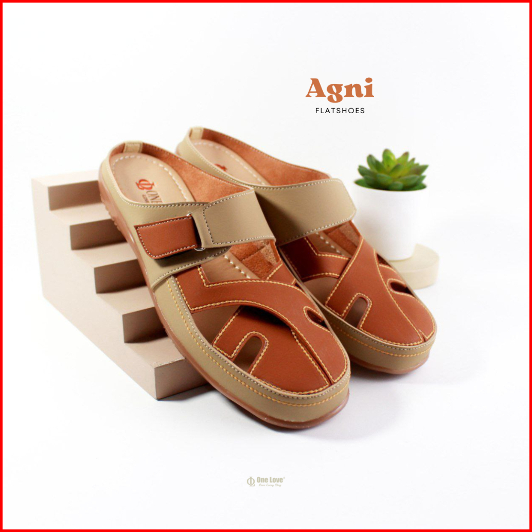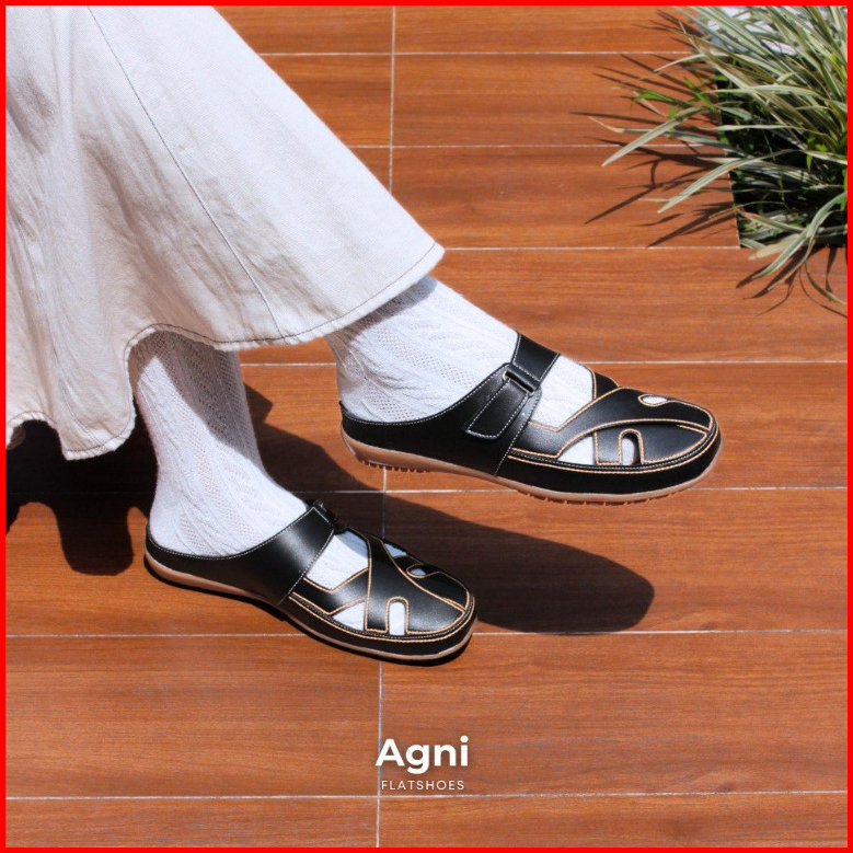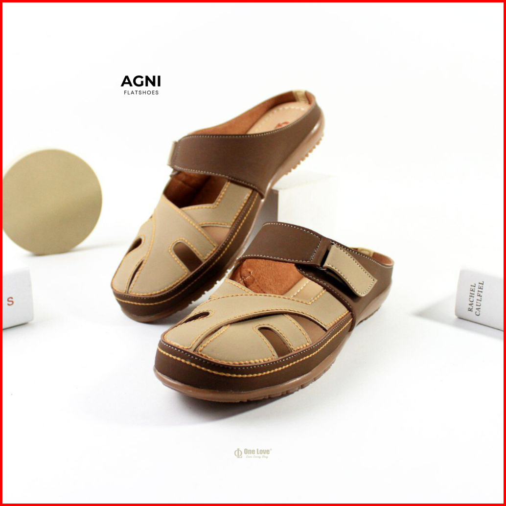 One Love Agni Bustong Flatshoes - Sepatu Casual Mules Flatshoes Wanita Kulit Sintetis Anti Slip Sol Karet Ringan Warna C