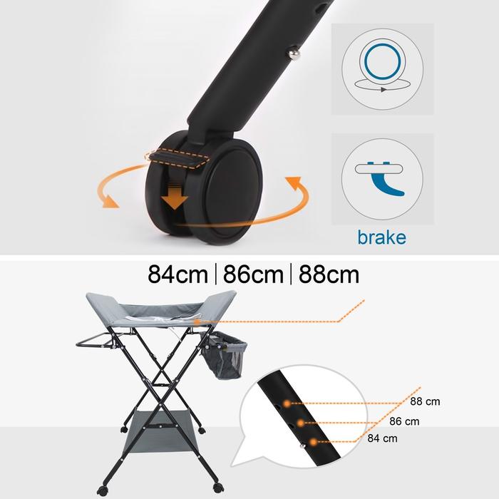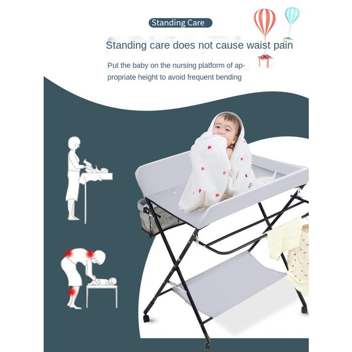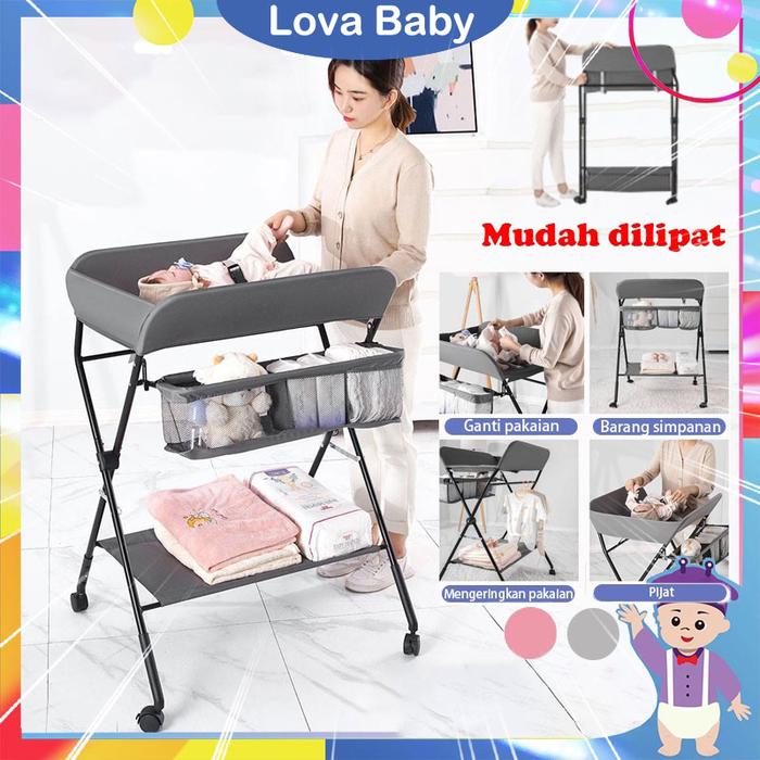 MEJA TEMPAT GANTI POPOK BAYI/MULTIFUNGSI MEJA BAYI /NEWBORN MEMILIKI RODA BISA/BARU LAHIR POPOK BAYI/MEJA GANTI POPOK MEJA LIPAT BAYI FURNITURE RANJANG - GREY
