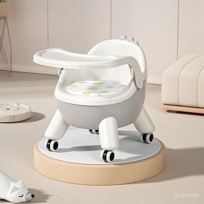 SUNXIN KURSI MAKAN ANAK BAYI DENGAN RODA I02/ BABY CHAIR / BANGKU / KURSI PLASTIK - ABU