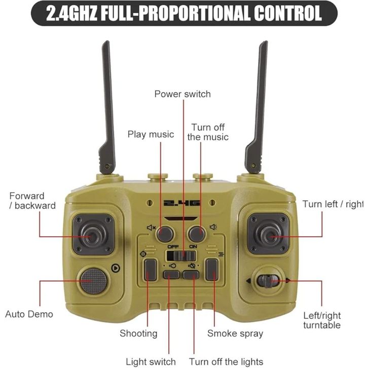 mainan robot anak Rc war tank ukuran jumbo frekuensi 2.4 Ghz type 9995