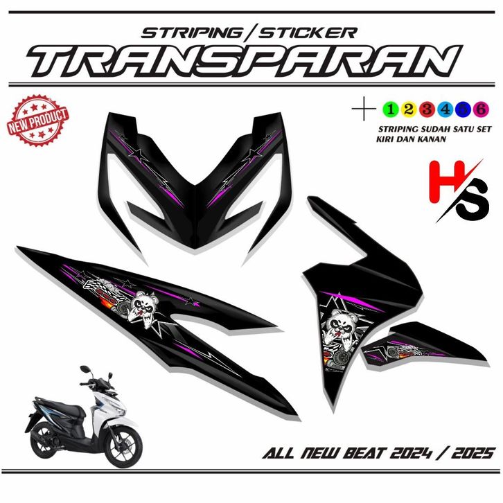 GROSIR STIKER STRIPING TRANSPARAN HONDA BEAT DELUXE 2025 VARIASI NEW MOTIF VARIASI TERBARU H61 POLET LIST abikd