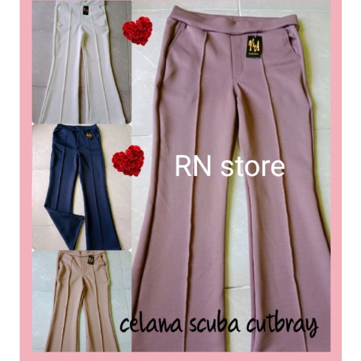 #RN__NEW cutbray scuba list depan/Celana cutbray wanita 100cm/Celana panjang wanita bahan scuba