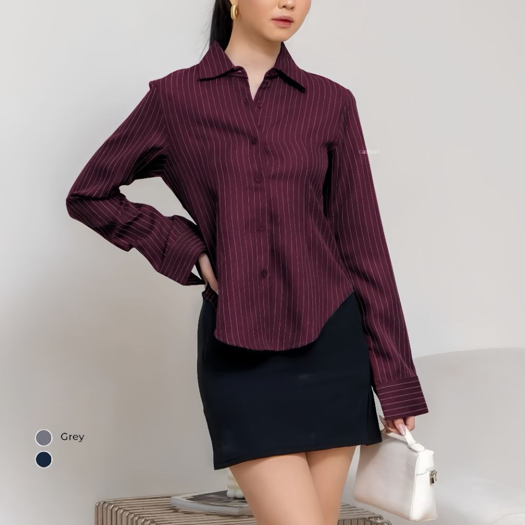Luna Stripe Kemeja Fitted Terlaris - Kemeja Wanita Stripe Salur Basic Casual
