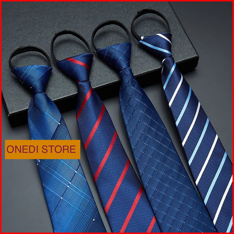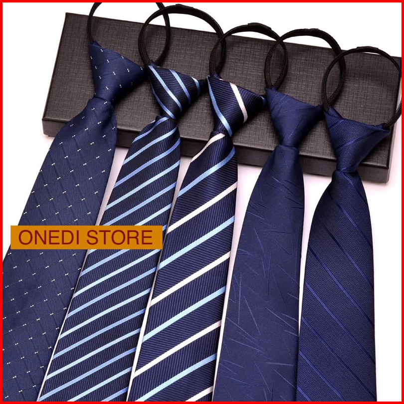Dasi Resleting Pria Biru Garis-garis Polyester