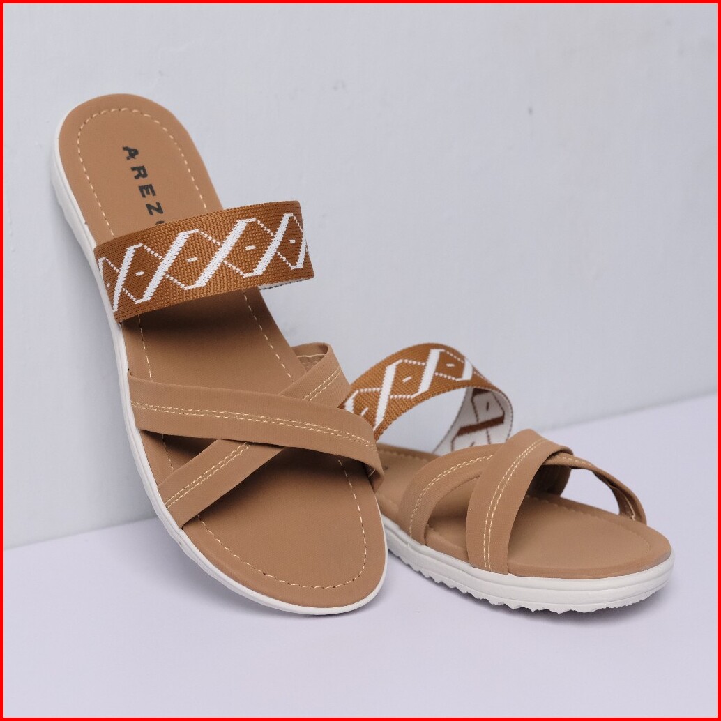 Sandal Wanita Slop Arezo Korean Style Sandal Slipper Sepatu Sandal Wanita Wedges Kekinian Selop Comfortable