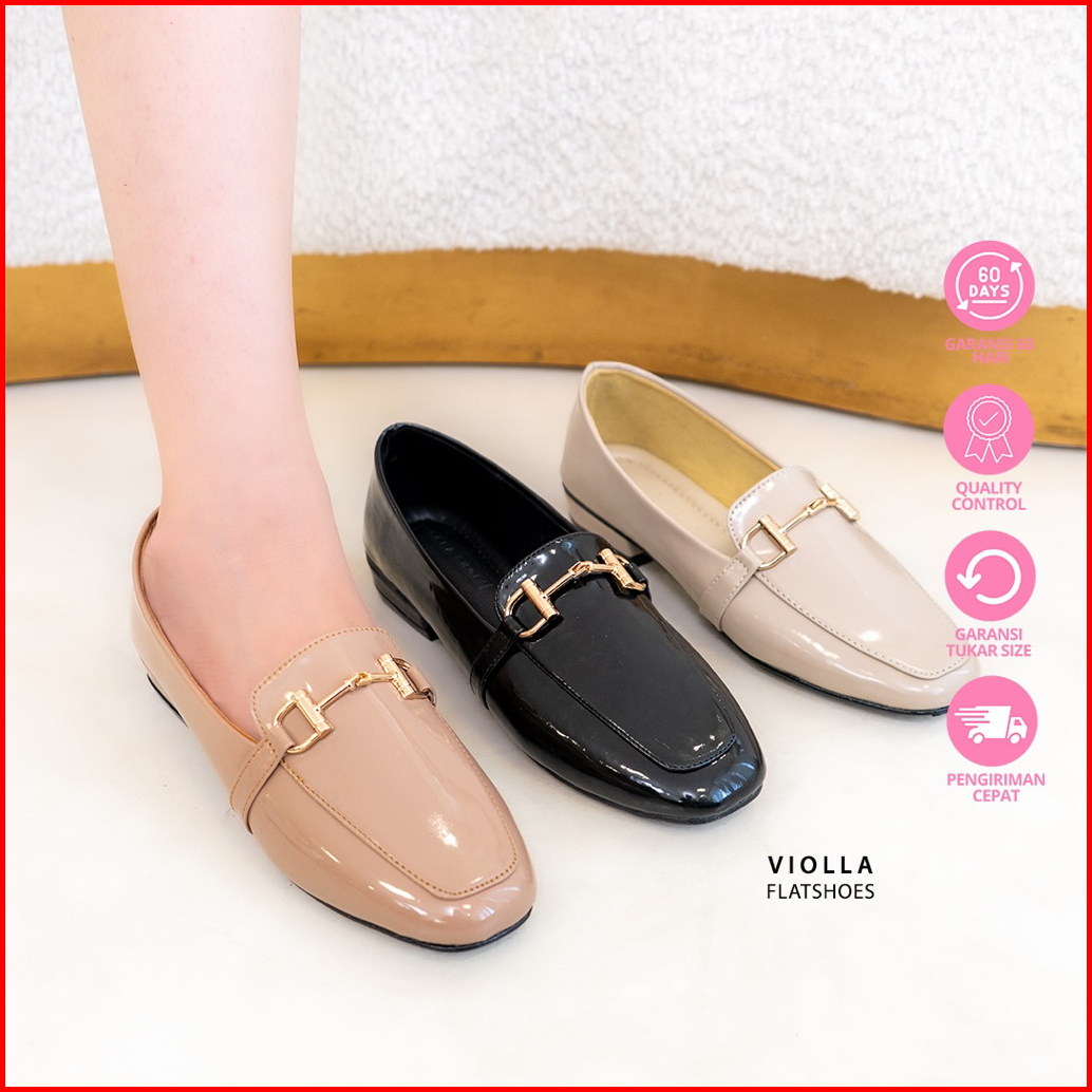 Bellashoesjkt Violla Flatshoes Kantor Glossy Wanita Daily