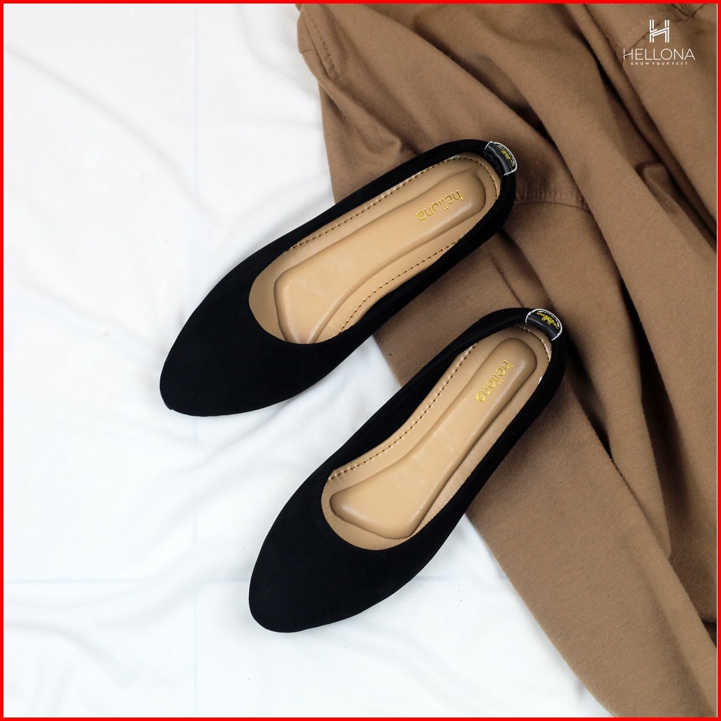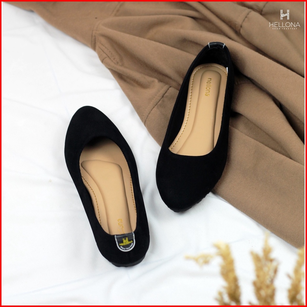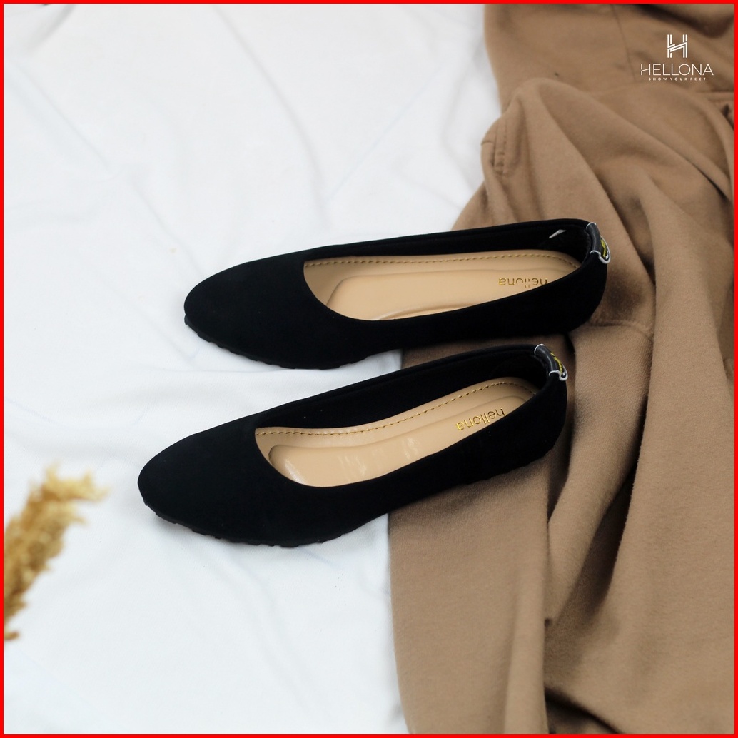 Hellona Gemini Flatshoes Empuk Sol Karet Warna Hitam Polos