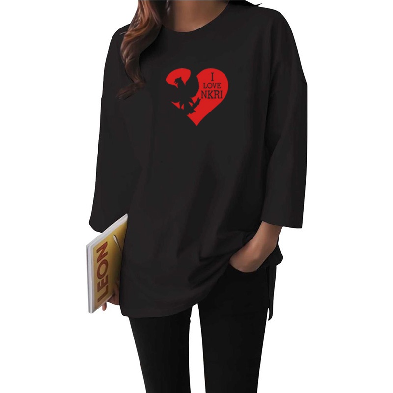 Kaos 17 Agustus / Kaos Oversize Wanita Love NKRI / Kaos Oversize Jumbo Lengan 7/8 / Kaos Wanita