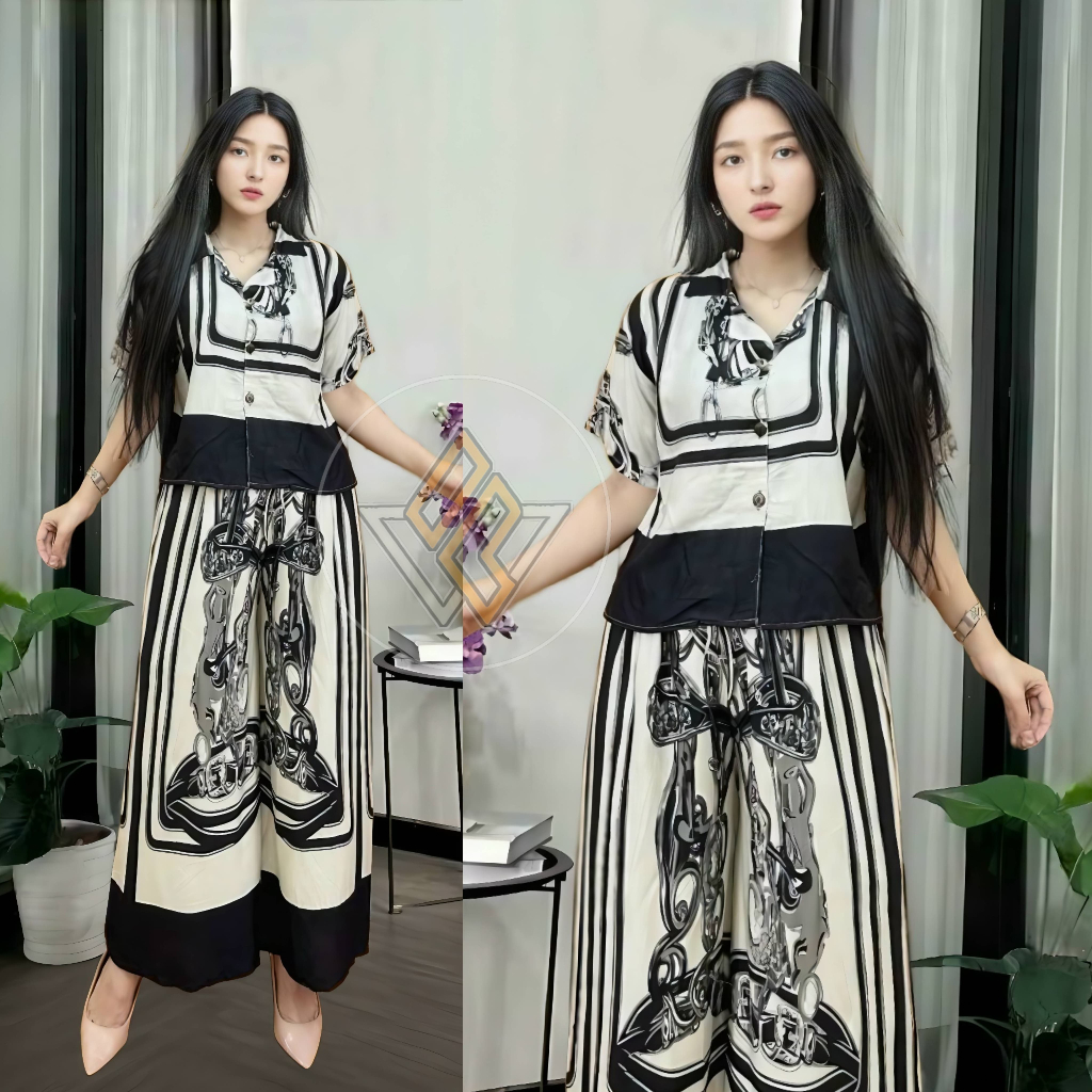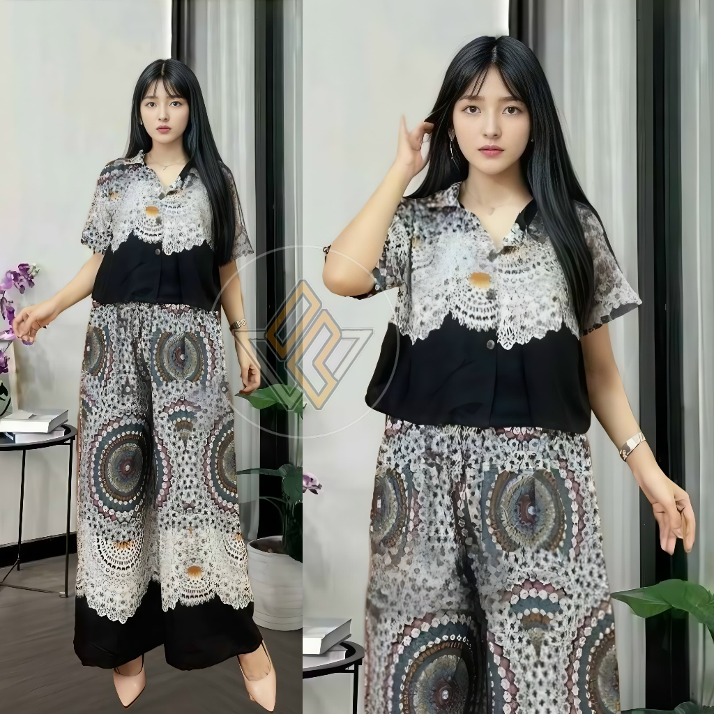 One Set Crop Viral Setelan Crop Celana Kulot Busui Kancing