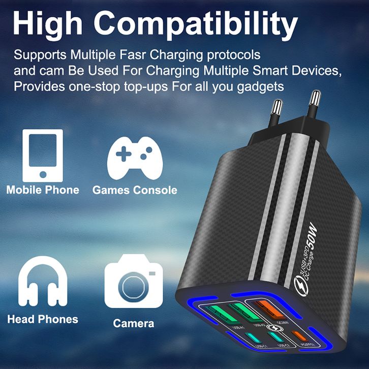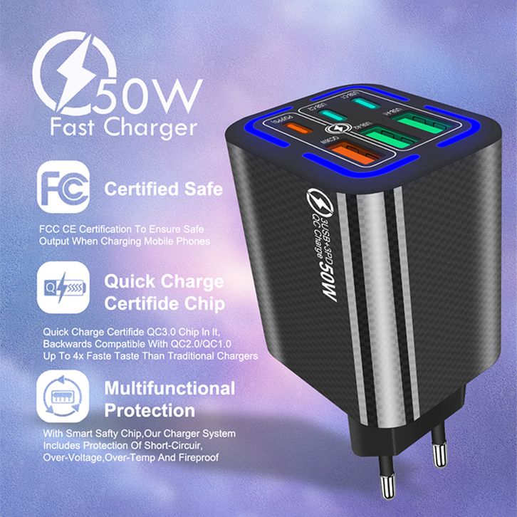 PROMO Adapter Charger Samsung 25w Iphone Type C Original bestool Pengisi daya ponsel 6-port PD20W3USB 3PD50W pengisian