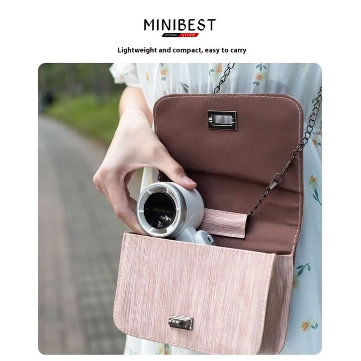 Minibest MB-F02 Mini Kipas Folding / Foldable Neck Hanging / LED Display Handheld Portable Fan / 5 Speeds Adjustable Fo