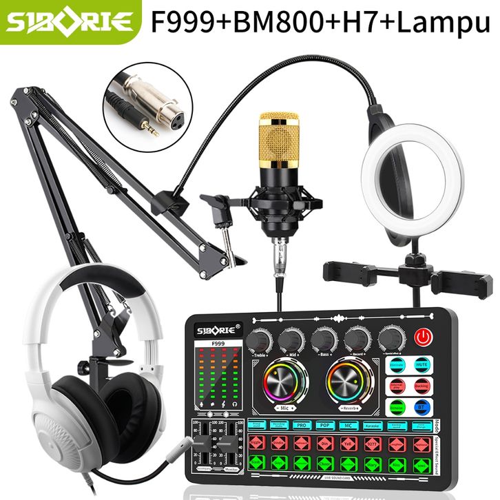 TERMURAH Siborie F999 SoundCard+BM800 Mic+H7 Headphone + Lampu for live Streaming Media ebohk