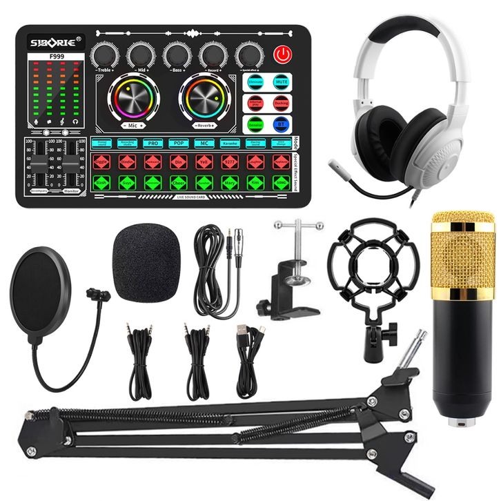 TERMURAH Siborie F999+BM800+H7 paket lengkap sound card mic headset full set for Streaming Langsung adimnmn