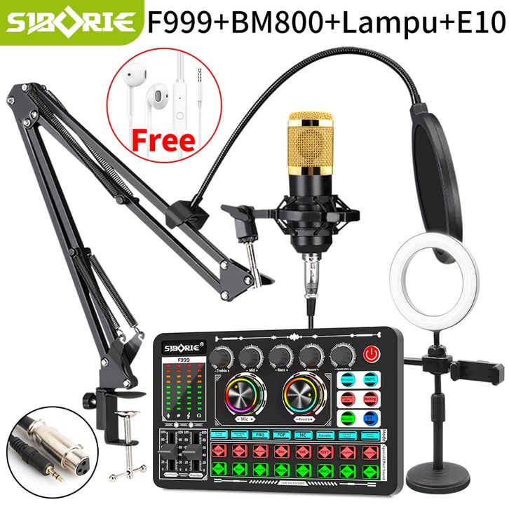 NEW Siborie【Free headset】F999 soundcard+BM800 mic+Lampu+E10 headset Paket Komplit Full Set Paket recording