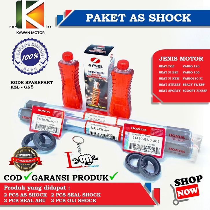 BEST SELLER PAKET AS SHOCK SET DEPAN BEAT FI/ESP, VARIO 125, VARIO 150, GENIO, BEAT NEW, SCOOPY FI, VARIO 110 FI, BEAT