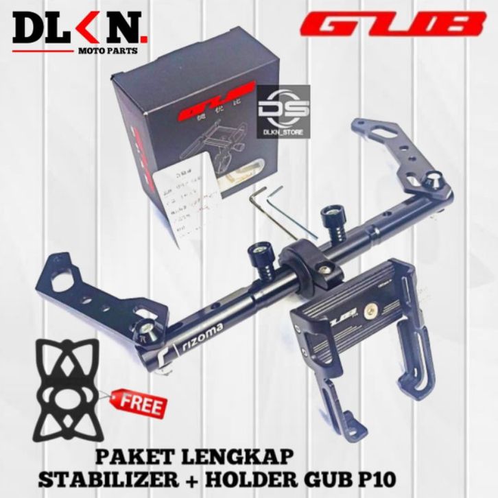 HOLDER HP GUB P10 ORIGINAL BAHAN ALUMUNIUM CNC PAKET KUMPLIT + STABILIZER SPION MOTOR NMAX, LEXI, VARIO, MIO DLL