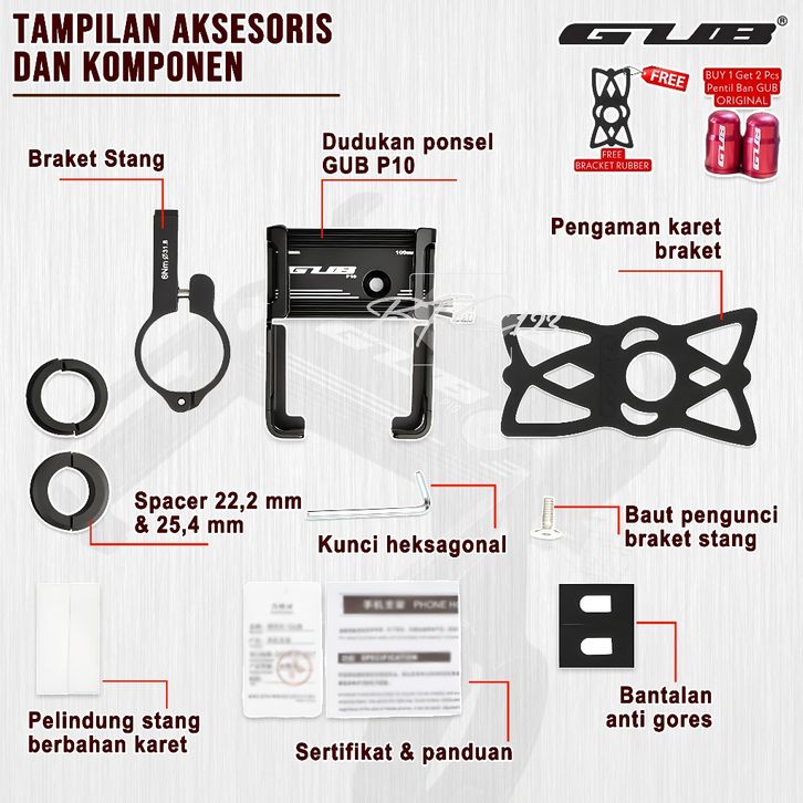 GUB P10 Original Holder Hp Dudukan Ponsel Alumunium Aloy Free Tutup Ban GUB 2 Pcs