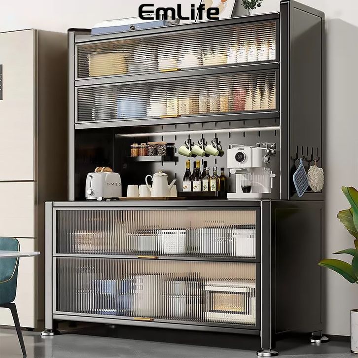 GROSIR Rak Dapur Lemari Dapur Dengan Pintu Rak Penyimpanan Microwave Oven Rak Multi-Lapisan Lemari Piring Lantai