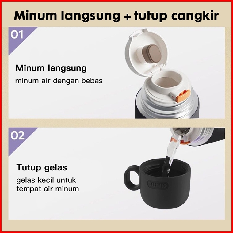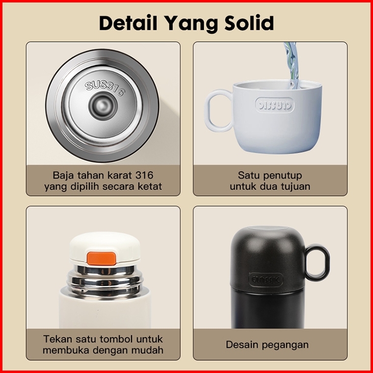 Hoptech - Termos Stainless Steel 316 Premium 500ml Tahan Panas Dingin 8 Jam Botol Minum Anti Tumpah