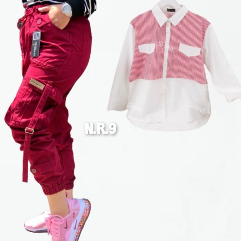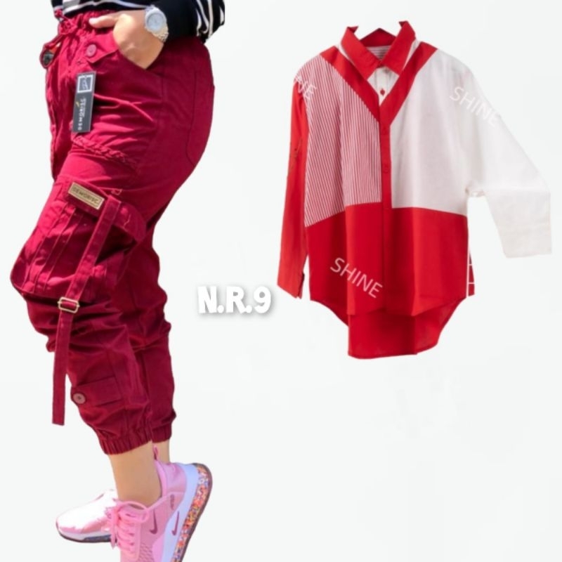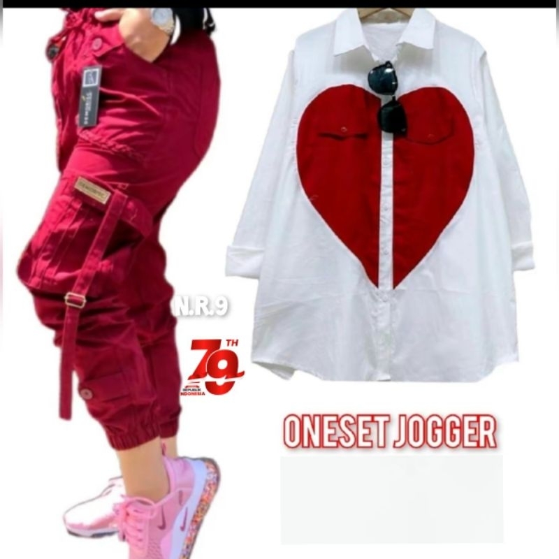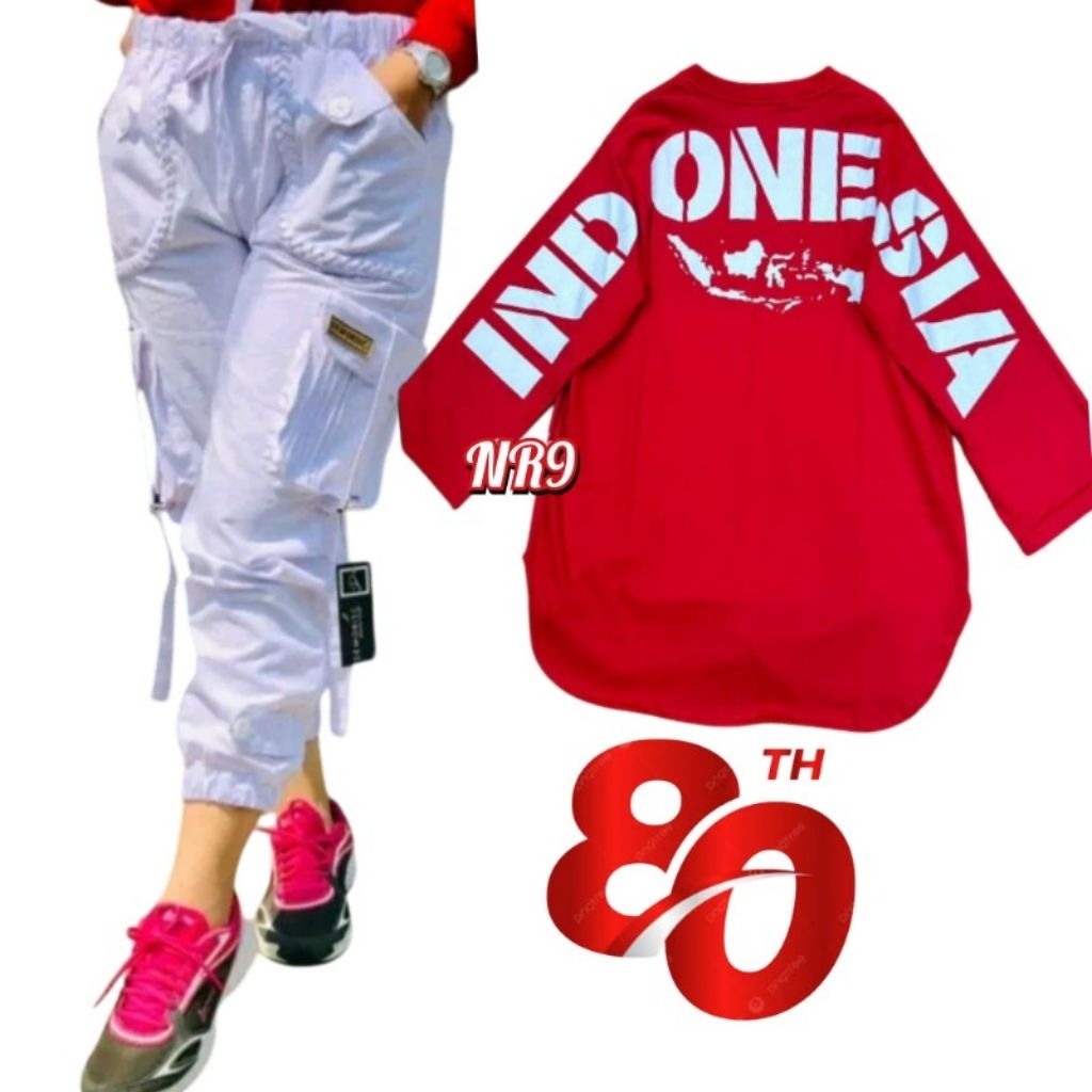 ONESET CELANA KARGO JOGGER MERAH PUTIH LOVE INDONESIA