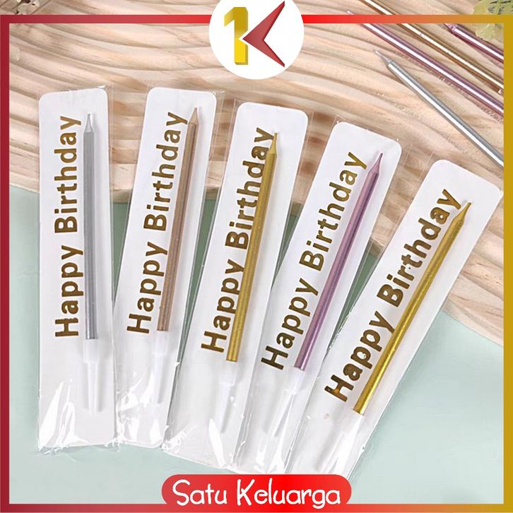 SK-C1357 Lilin Ulang Tahun Metalik Happy Birthday / Lilin Panjang Kue Ulang Tahun Satuan Metallic Warna Warni