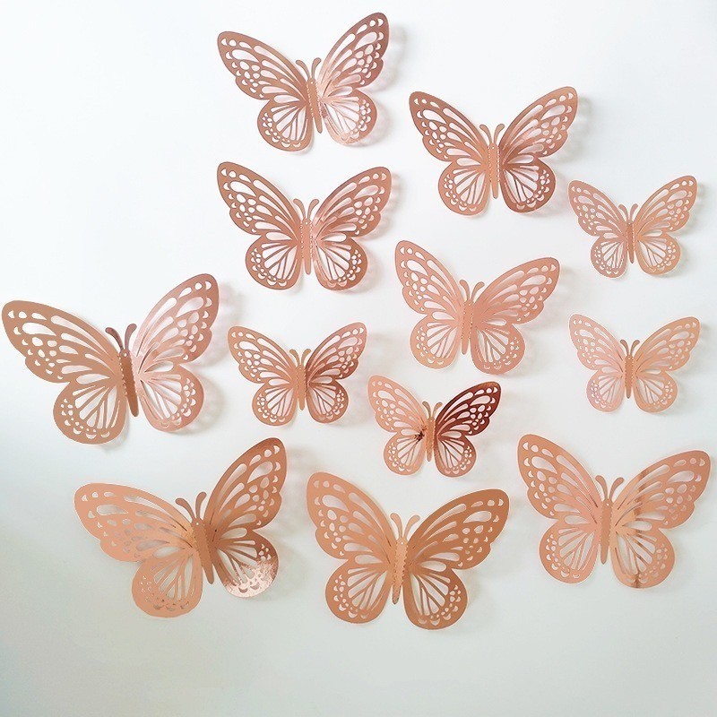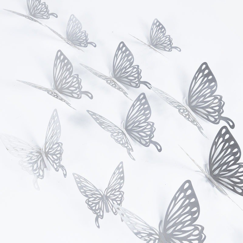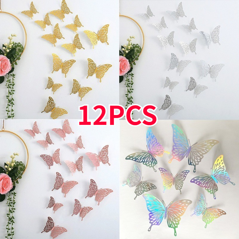 12PCS Stiker Dinding Kupu Kupu / Stiker Seni Tekstur Logam 3D DIY Hiasan Dinding Kupu Kupu/ Kupu Kupu Hiasan Dinding