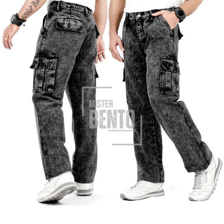 Celana Cargo Jeans Pria Loose fit Reguler / Cargo pants Jeans Reguler Standard Denim Black Wash sandwash