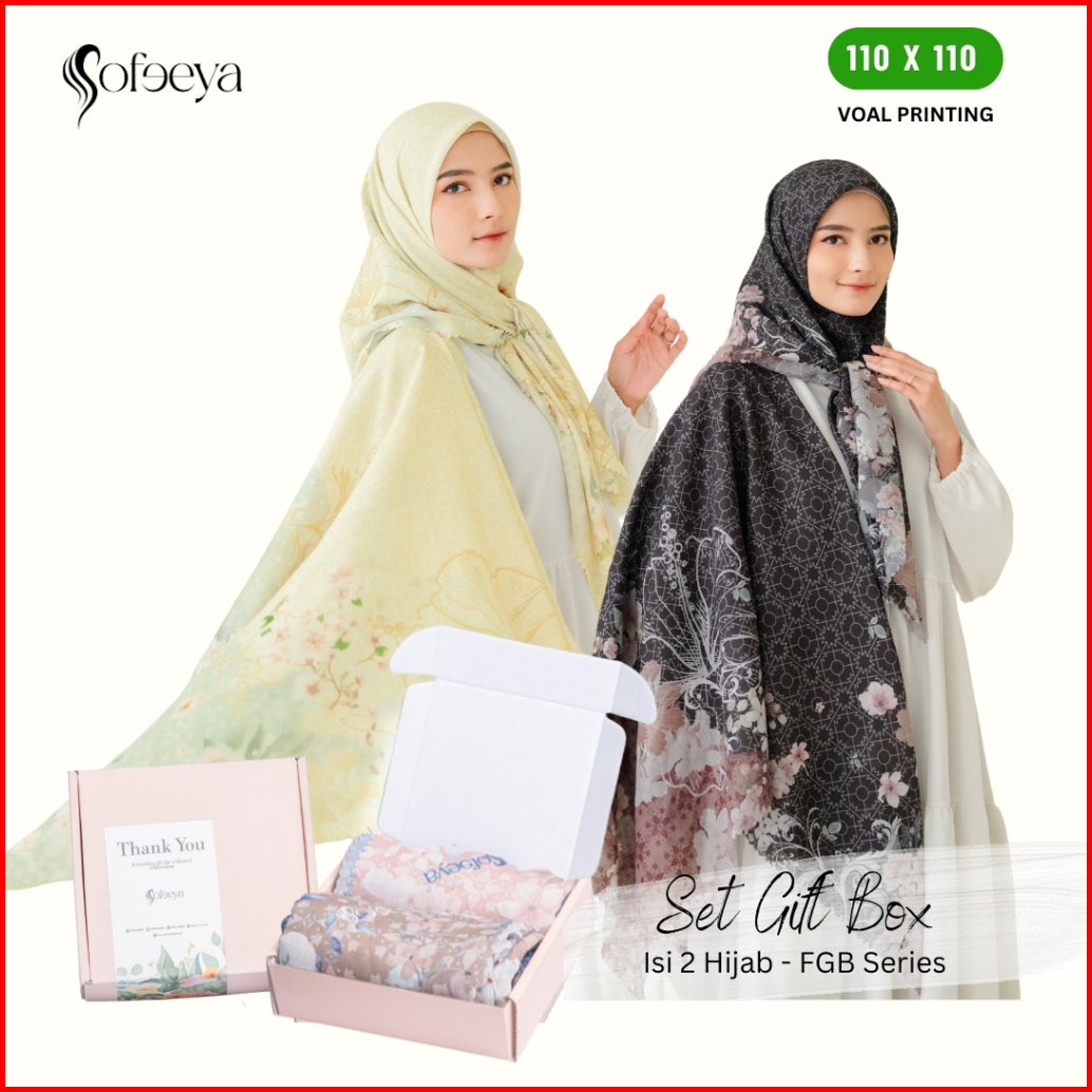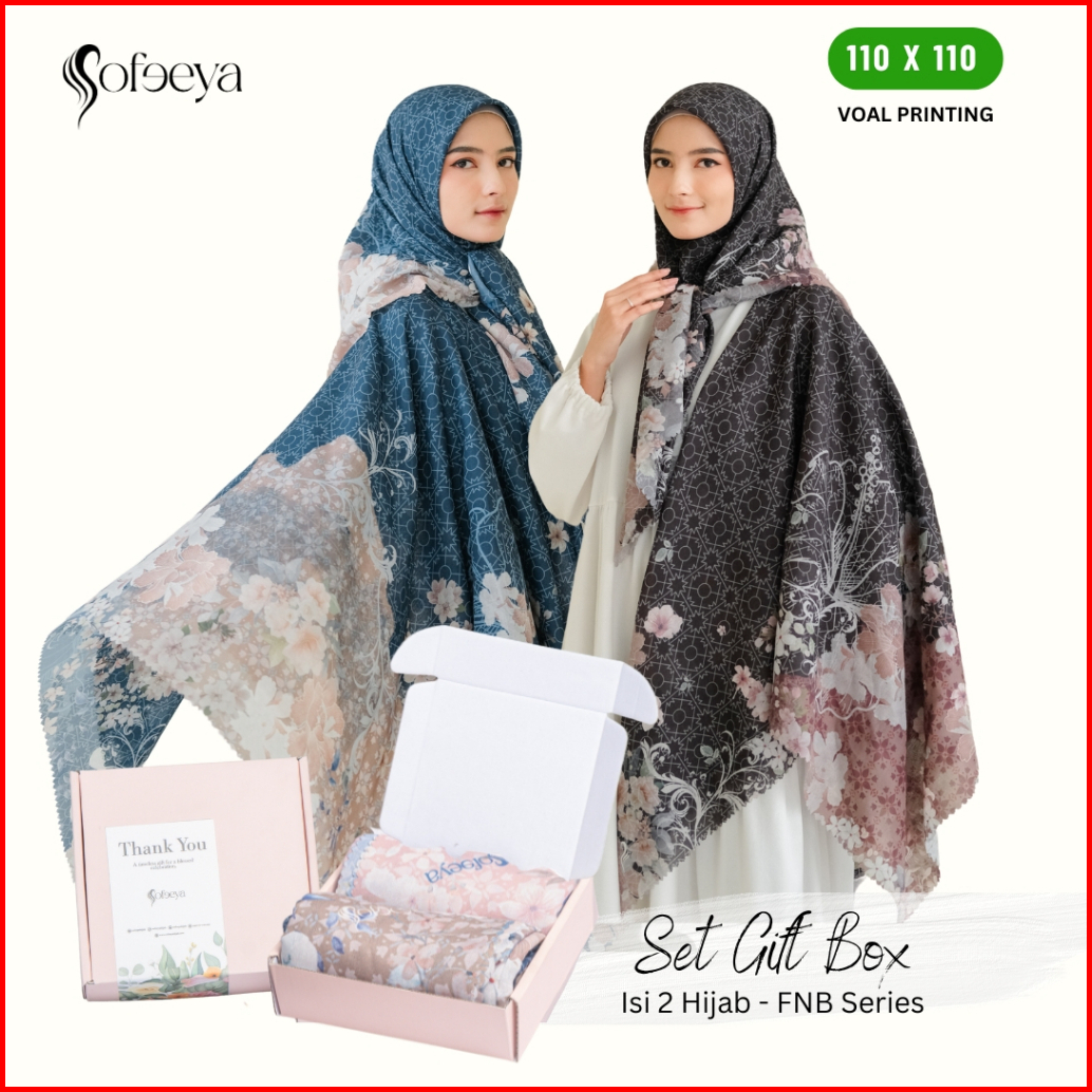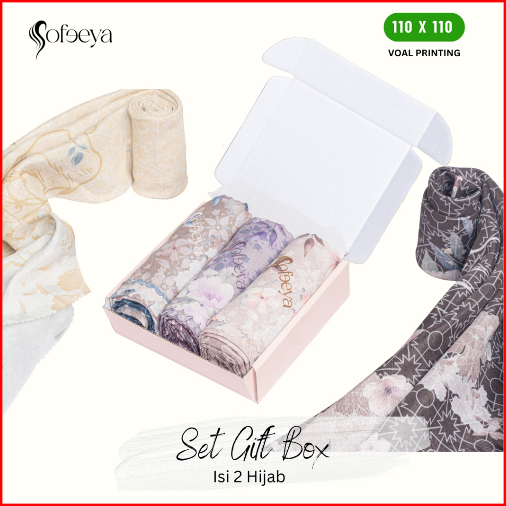Sofeeya - Hampers Kerudung Segi Empat Ukuran Syar I Standar Isi Paket 2 Jilbab Segiempat Voal Motif Free Box Untuk Souve
