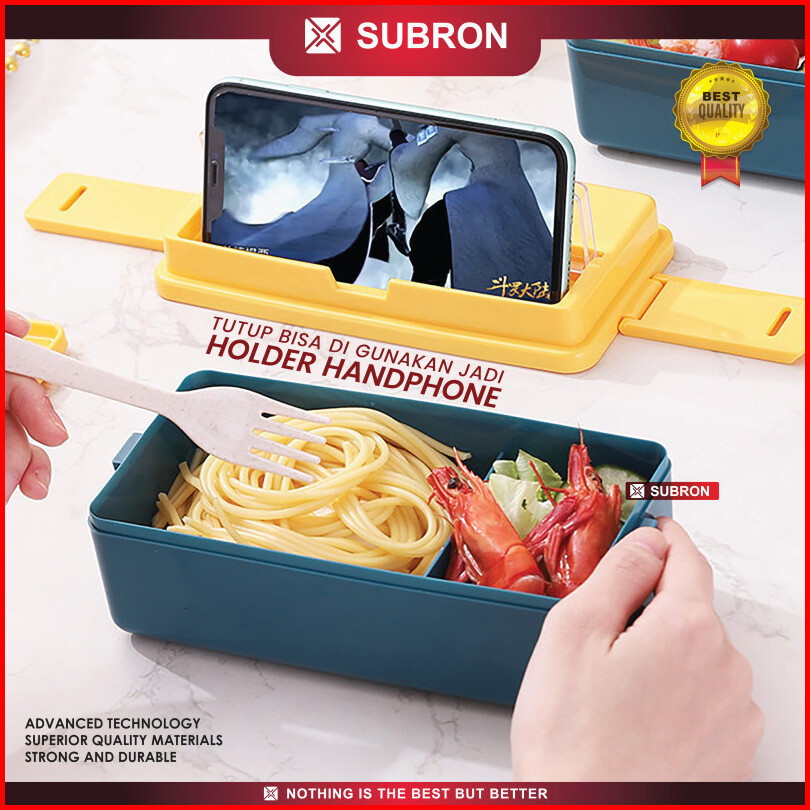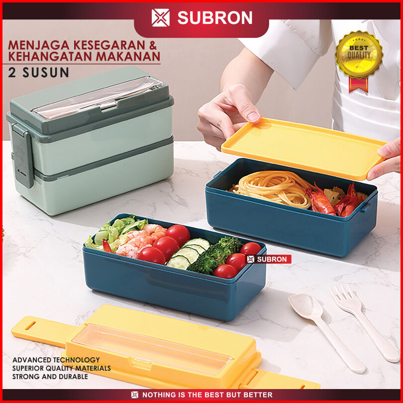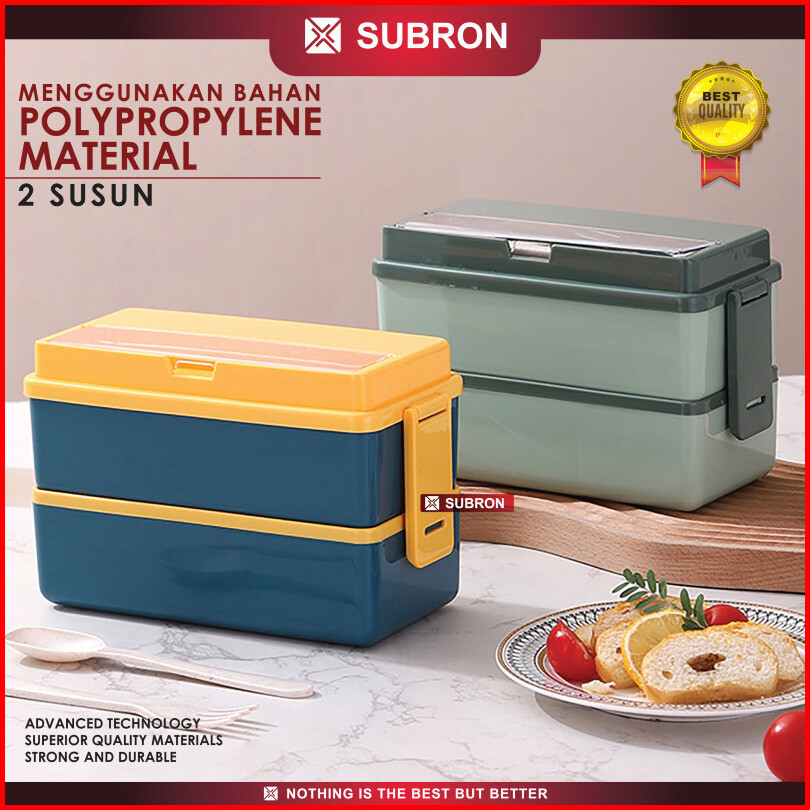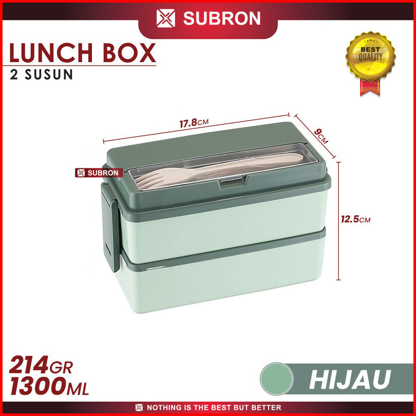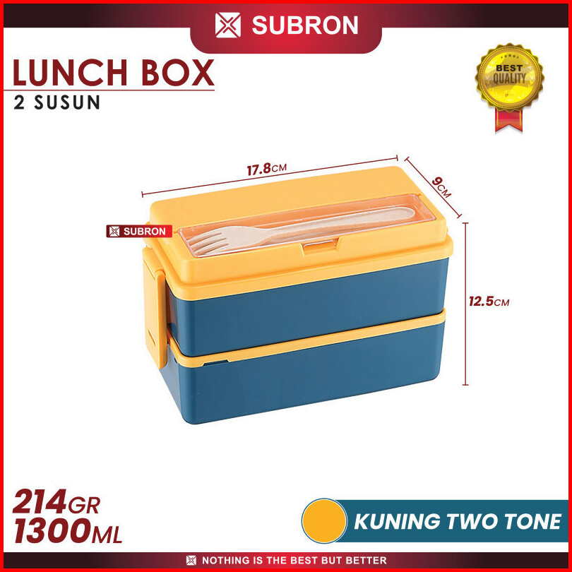 Subron Lunch Box Rantang 1300ml 2 Susun Free Sendok Garpu Food Grade Bekal Misting Makan Siang