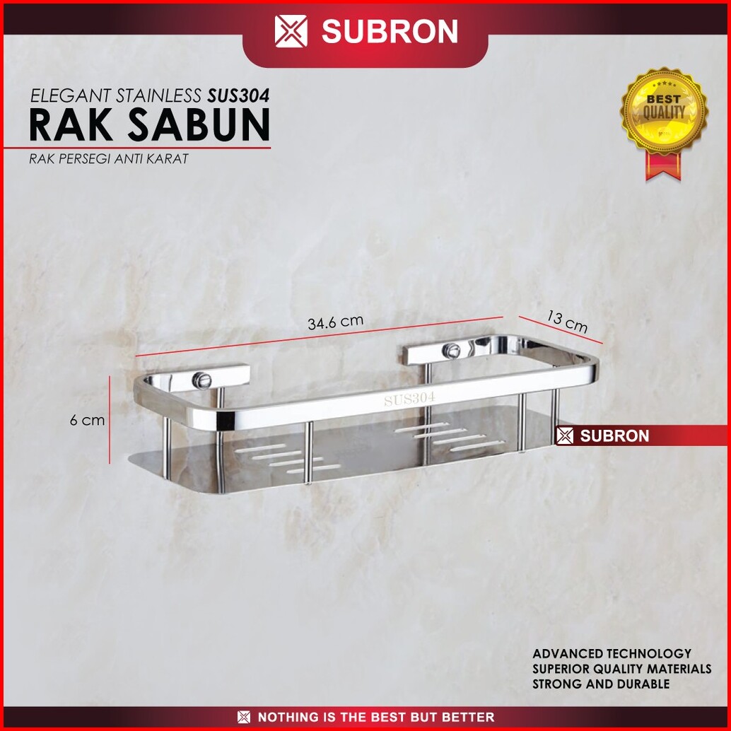 Subron Sus304 Rak Sabun Persegi Stainless 1 Susun Tempat Shampoo Alat Kamar Mandi Dinding Anti Karat