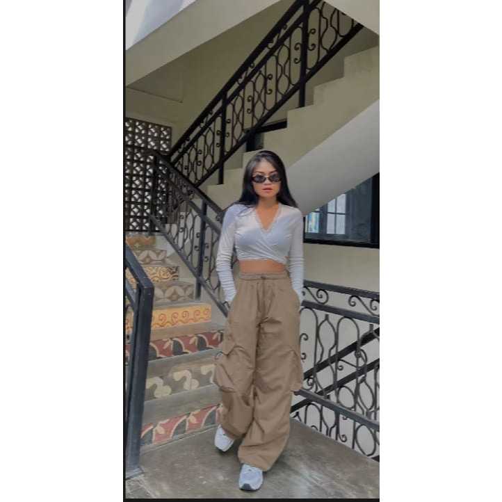 Kiya Cargo Pants Wanita Highwaist Loose Korean Style Jumbo - Celana Kargo Wanita Terbaru