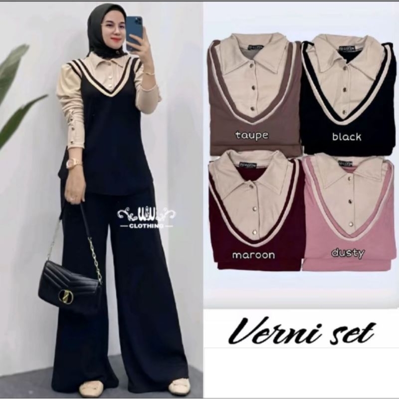 ONE SET VERNI BAHAN KAOS KNIT PREMIUM//ONESET KNIT KEKINIAN TERBARU REMAJA DEWASA