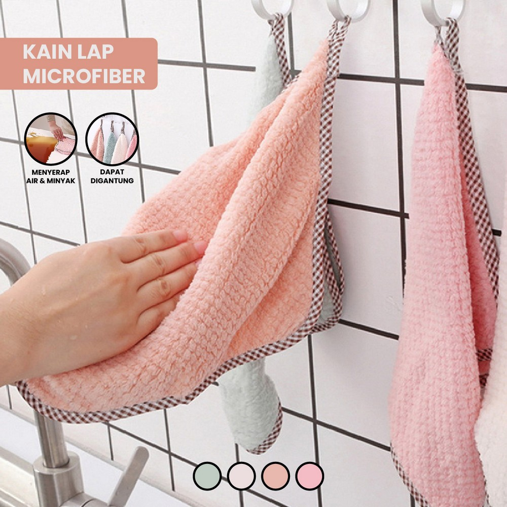 Kain Lap Tangan Gantung Lap Microfiber Lembut Serbaguna / Kain Lap Microfiber Hand Towel Lap Tangan Kain Handuk Serap Air stockami C865